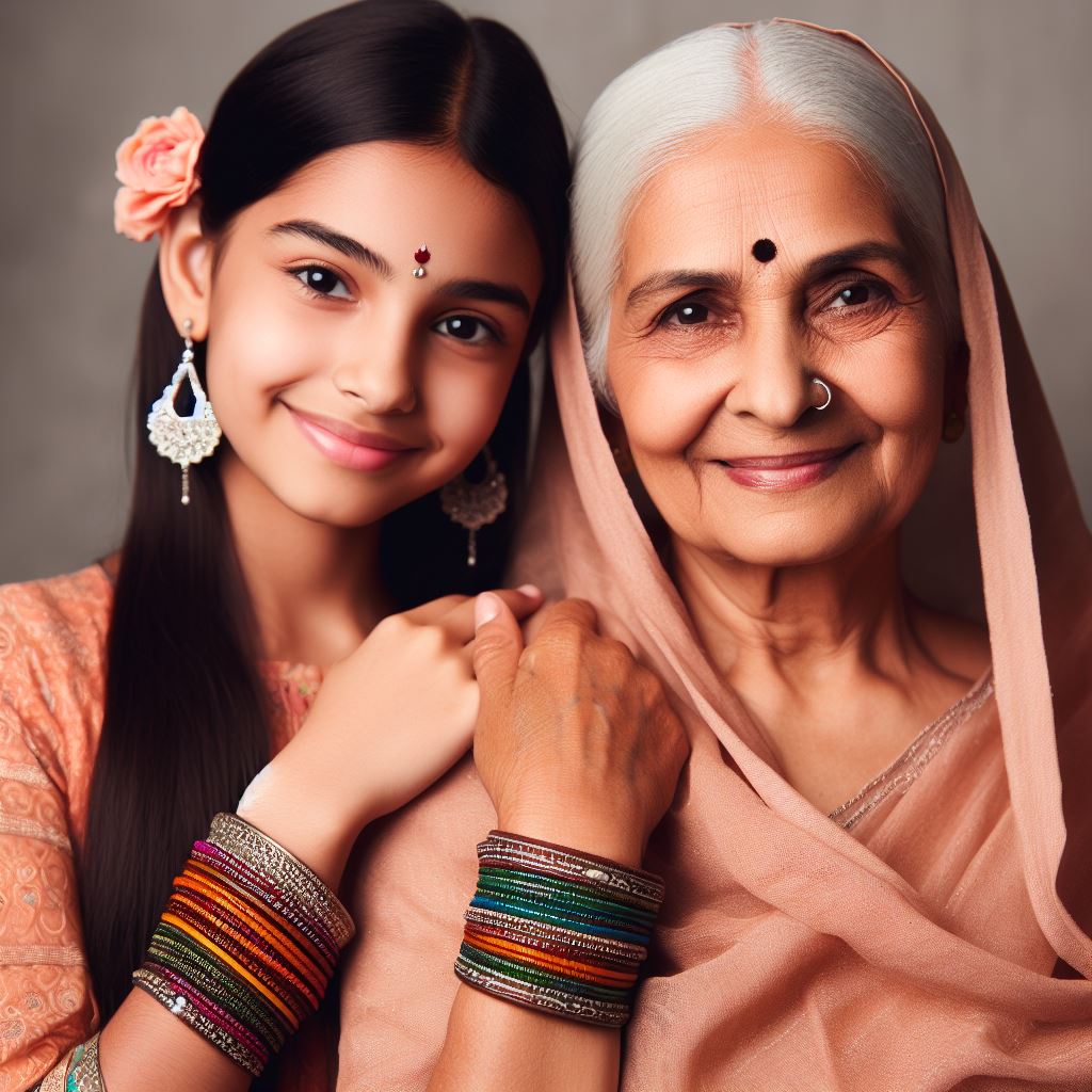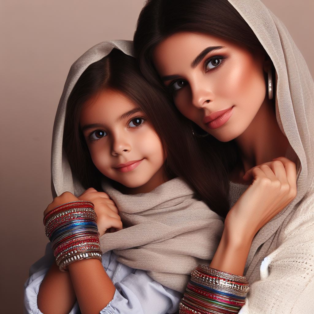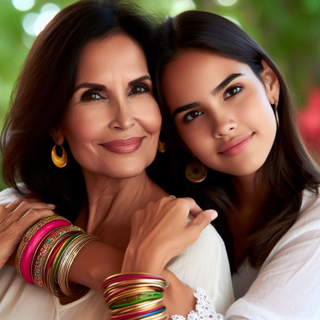Twinning bangle stacks for mother and daughter sets are the perfect way to show your enduring bond. Mom and daughter can feel connected all day long with these elegant and timeless reminder of love and admiration. The images showing Mother-Daughter are AI generated by Bing and are not the actual bangle images.